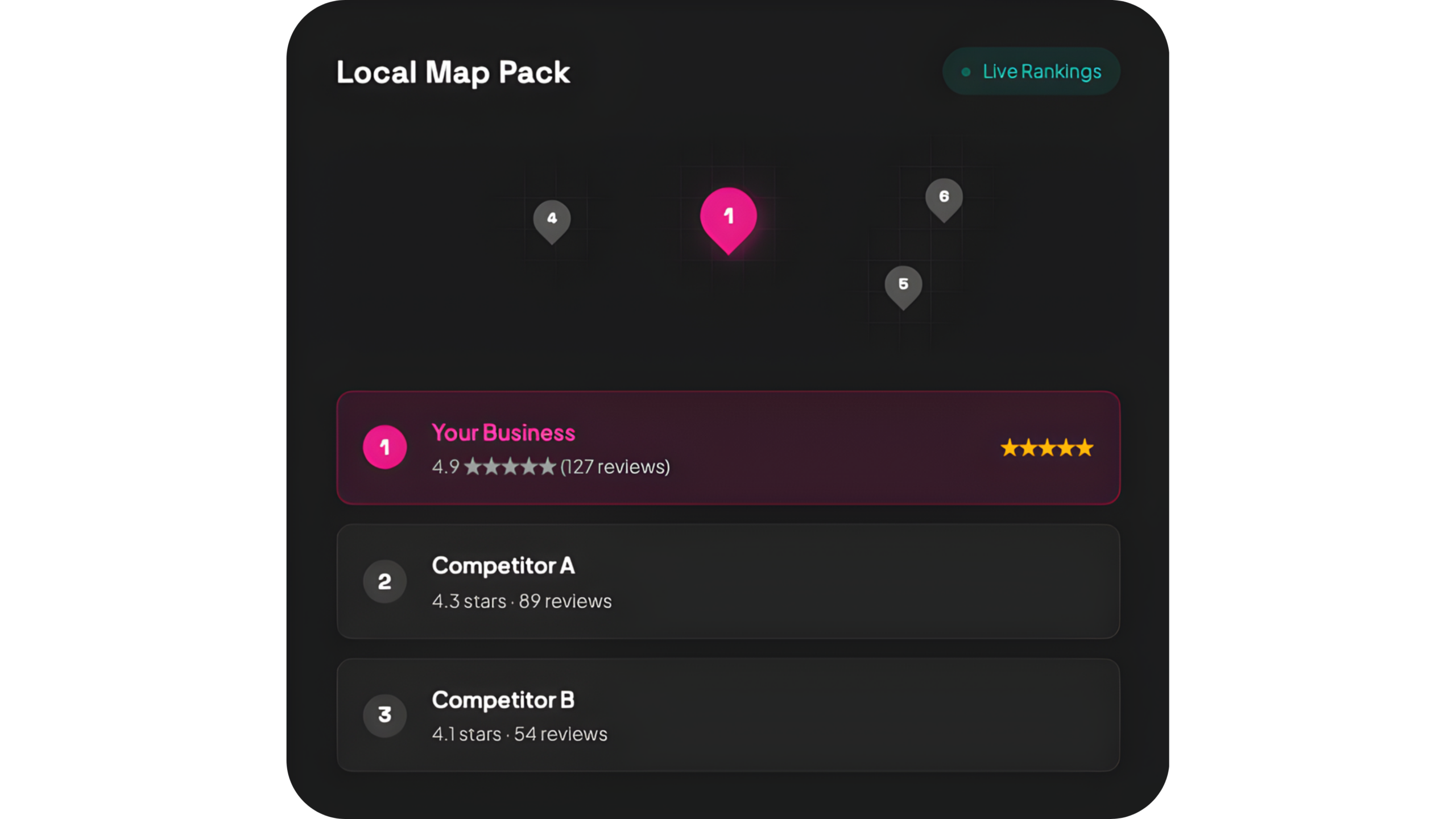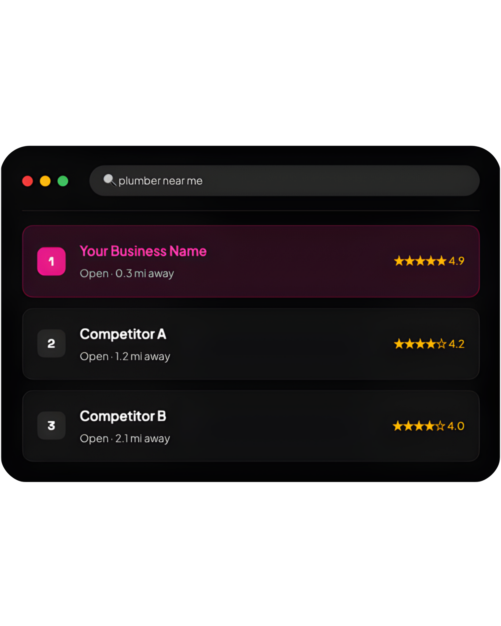 97% of people search online before choosing a local business. If you’re not showing up in the top 3 results, you’re invisible. We change that.